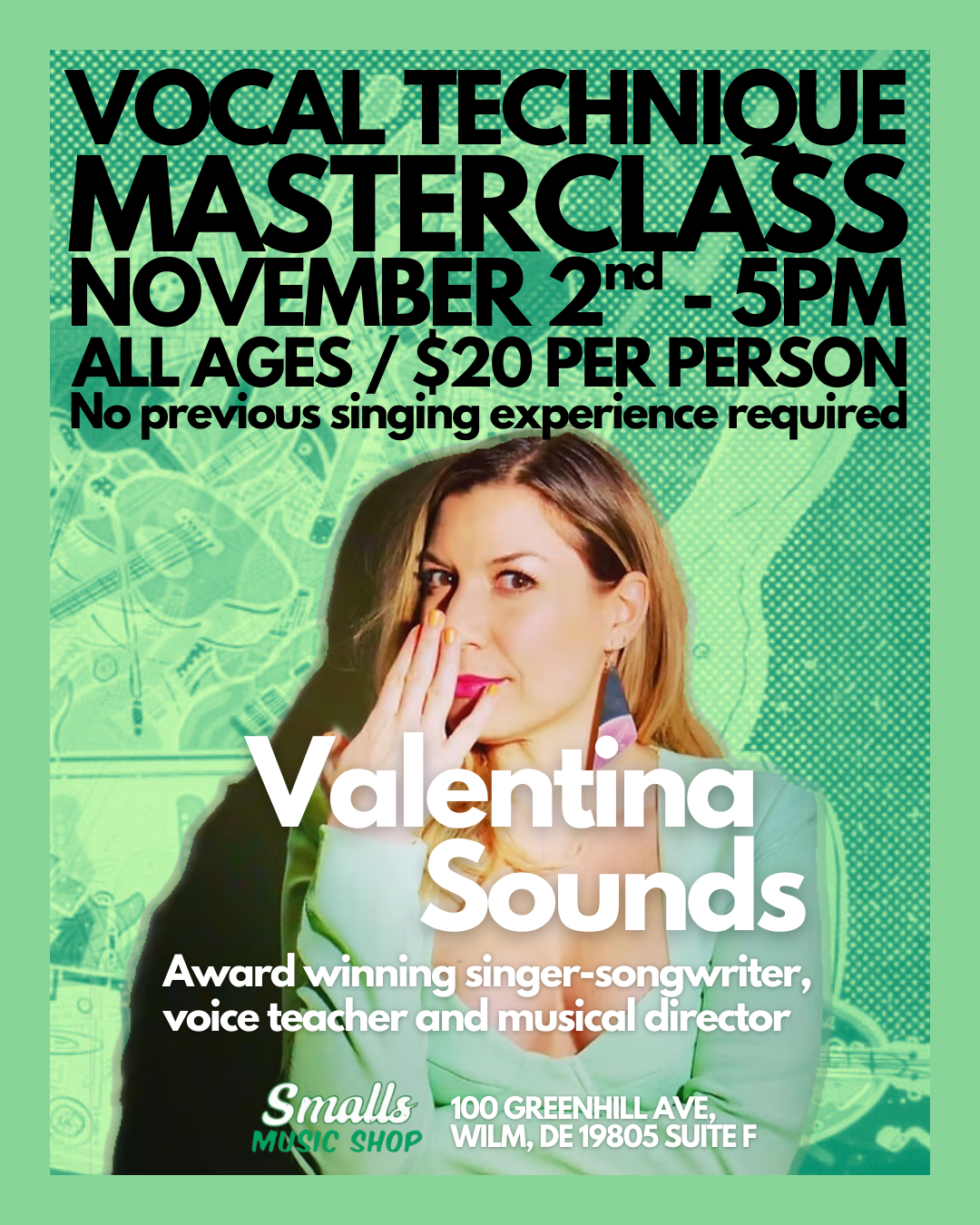 Valentina Sounds will be presenting a vocal technique master class here at the shop. This is an all ages event and no singing experience is required! $20 at the door day of.
